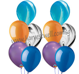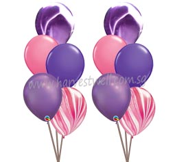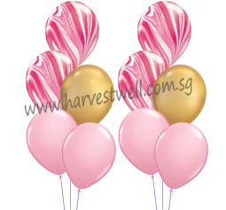 Each side bouquet consist of 2 Fashion, 1 Chrome and 2 Marble Balloons.